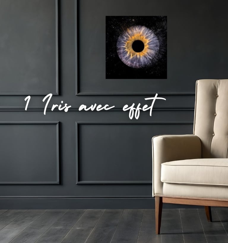Mes formules premium varient selon le nombre d'iris à photographier, avec impression sur verre acrylique. Je propose des formats de base, mais il est tout à fait possible de commander d'autres formats et supports. Nous pourrons en discuter lors de notre rendez-vous pour trouver l'option qui vous convient le mieux.